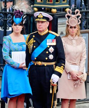На фото: принц Эндрю (в центре) и его дочери, принцесса Евгения (слева) и принцесса Беатрис, покидают Вестминстерское аббатство на королевской свадьбе принца Уильяма и Кэтрин Миддлтон, Лондон, 2011 год. Принц Эндрю заявил в среду, 20 ноября 2019 года, что он отходит от выполнения общественных обязанностей с разрешения королевы, заявив, что недавние разоблачения, касающиеся его связи с покойным осужденным за сексуальные преступления Джеффри Эпштейном, стали «серьезным отвлекающим фактором» для работы королевской семьи.