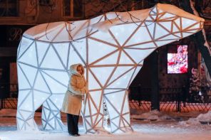 На фото: девушка около новогодней инсталляции на площади Ленина. Донецк.