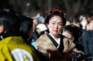 На фото: люди собираются, чтобы отпраздновать Новый год в буддийском храме Дзодзодзи в Токио.