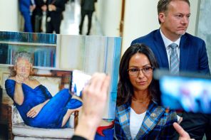 На фото: член Палаты представителей США Лорен Боэберт (республиканка от штата Колорадо) держит в руках фотографию картины с изображением бывшего президента США Билла Клинтона, предположительно выставленную в доме Джеффри Эпштейна, во время пресс-конференции членов Комитета по надзору Палаты представителей в офисном здании Рэберна в Вашингтоне, округ Колумбия, 13 января 2026 года. И Хиллари Клинтон, и Билл Клинтон были вызваны в суд, но не явились на закрытый допрос. Билл Клинтон изображен в платье (такое, предположительно, носила стажер в Белом доме Моника Левински) и в красных туфлях на каблуках. Картина написана австралийско-американской художницей Петриной Райан-Кляйд.