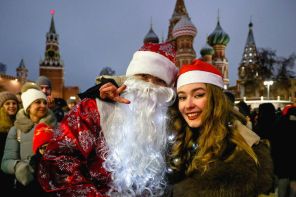 На фото: празднование Нового года на Красной площади в Москве, Россия.