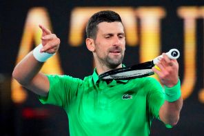 На фото: сербский теннисист Новак Джокович в матче третьего круга турнира Australian Open против Ботика ван де Зандсхулпа из Нидерландов, Мельбурн, Австралия. Ботик ван де Зандсхулп (Нидерланды) — Новак Джокович (Сербия) — 3:6, 4:6, 6:7
