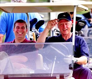 На фото: президент Клинтон (справа) отправляется на игру в гольф с принцем Эндрю (слева) в гольф-клубе Farm Neck в Оук-Блаффс, штат Массачусетс, на острове Мартас-Винъярд. Билл Клинтон также упоминается в списках Эпштейна.