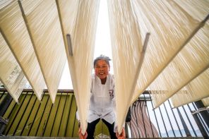 В последние дни жители деревни Цзюэхуэй, расположенной в северо-восточном поселке уезда Чжунцзян города Дэян провинции Сычуань, пользуются хорошей погодой для производства лапши ручной работы для поставок на рынок.