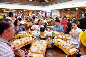 На фото: туристы из Вьетнама пробуют рисовую лапшу в городе Мэнцзы, Хунхэ-Ханьский и Иский автономный округ, провинция Юньнань, Китай.