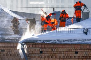 На фото: чистка крыш от снега и наледи сотрудниками коммунальных служб, Москва, Россия. По данным метеорологической обсерватории МГУ имени М. В. Ломоносова, 20 февраля 2026 года высота снежного покрова в столице достигла 80 сантиметров — это абсолютный максимум за 72 года непрерывных измерений.