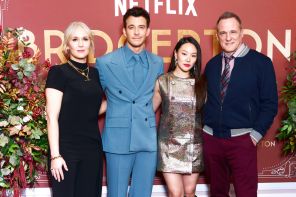 На фото: продюсер Джесс Браунелл, актеры Ерин Ха, Люк Томпсон и режиссер Том Верика (слева направо) на показе второй части четвертого сезона сериала «Бриджертоны», Лондон, Великобритания. «Бриджертоны» — это популярный костюмированный сериал Netflix (и серия романов Джулии Куинн), повествующий о любовных похождениях восьми братьев и сестер влиятельной семьи в Лондоне эпохи Регентства (начало XIX века). Каждый сезон посвящен поиску любви одним из членов семьи на фоне светских балов, интриг и скандальных заметок таинственной леди Уислдаун. 4-й сезон сериала «Бриджертоны» (вышел в начале 2026 года) посвящен истории любви Бенедикта Бриджертона (Люк Томпсон) — второго сына семьи, склонного к богемной жизни, и таинственной девушки по имени Софи Бэк (Ерин Ха). Сюжет основан на третьей книге Джулии Куинн «Предложение джентльмена» и напоминает историю Золушки.